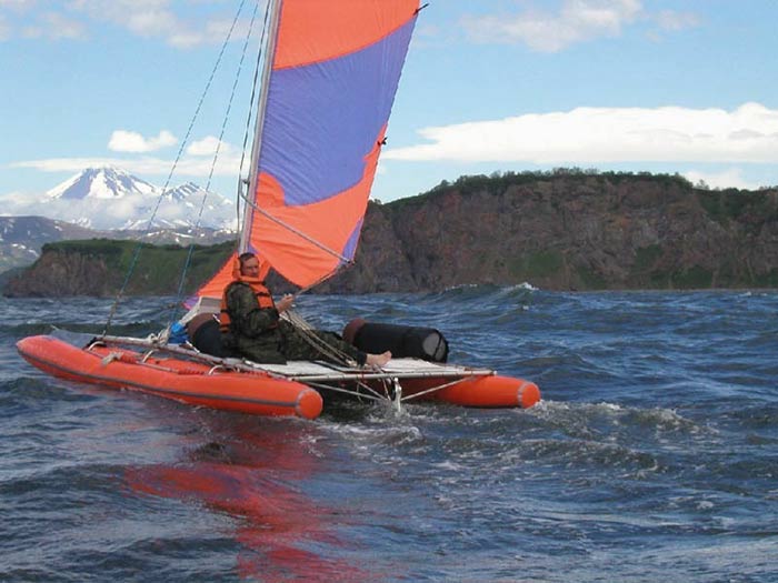 Катамаран взял в январе 2000 года в Санкт-Петербурге. Привез на Камчатку. Летом 2000 г. начал свой стаж "катамаранщика". Вместе с другом открытие сезона начинаю в мае и заканчиваю в сентябре ежегодно. Начинали с Авачинской бухты. Последние два года ходим по Тихому океану вдоль побережья Камчатки.
