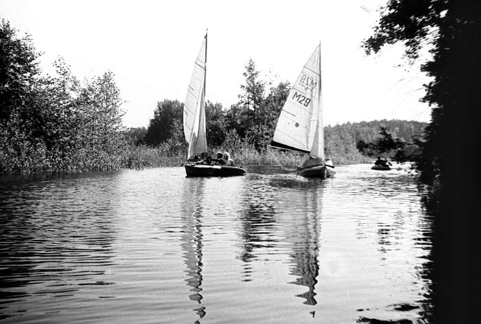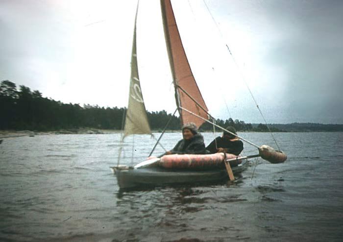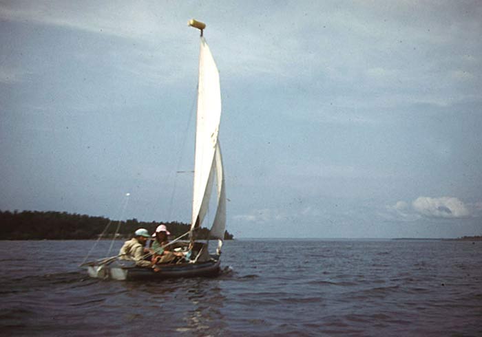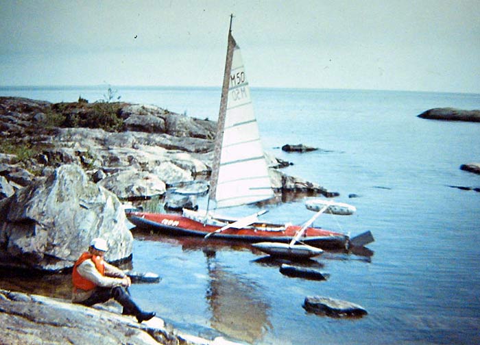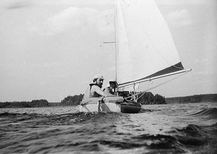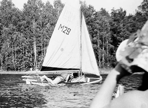 Cлавная была лодочка, ходила хорошо. С регистрацией ГИМСа, между прочим: ГЦ 13-54. Парус – подарок Володи Канюкова, с тримарана из Салюта, на котором он ходил перед Мевой М 69.