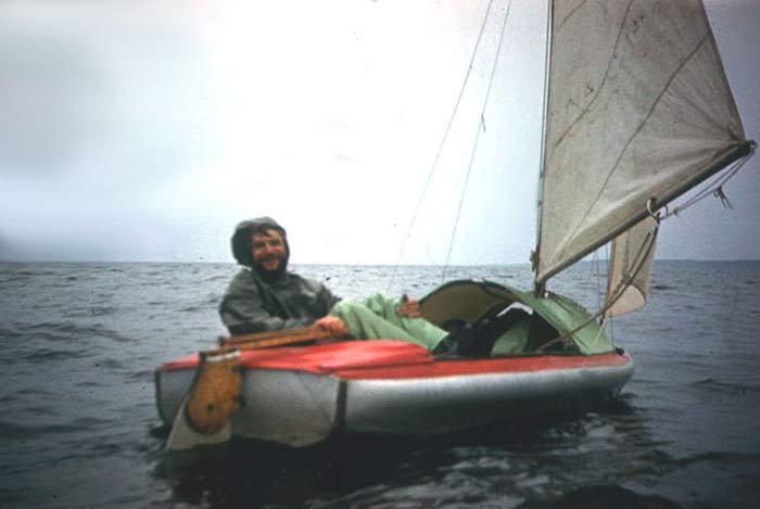 Цепляясь за шверт, можно перевернуть ее обратно. Но нелегко. Кроме штатных поддувных баллонов по бортам,