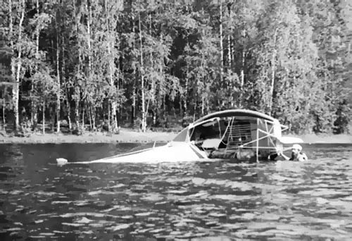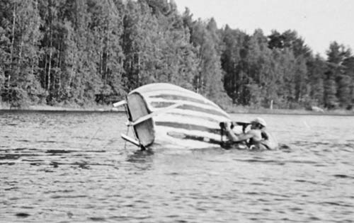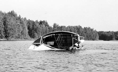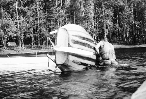 Снова на ровном киле, но лодка полна воды. Если будет волна, вряд ли удастся откачать эту воду.