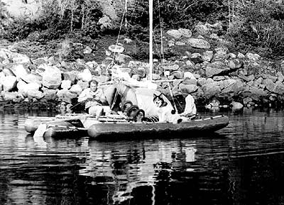 Экскурсию по каналам Большого Соловецкого острова мы решили провести так: разбиться на две группы. Обе двигаются на север. Одна по каналам на лодке, друга пешком, осматривая по пути ботанический сад, маяк на г. Секирной, другие достопримечательнос-ти. Группы встречаются на северной лодочной станции и меняются маршрутами. Витя З. как человек, привычный более к воде, нежели к суше, вызвался быть постоянным кормчим на лодке.