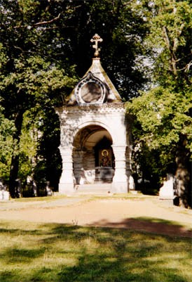 Потом мы долго карабкались по ветхим деревянным тротуарам и лестницам, когда-то проложенным в сумрачной лесной чаще, перебирались по высоким полуразрушенным мостам через протоки лесных озер, поднимались в горы и спускались в глубокие лощины, пока не вышли на ровную и прямую дубовую аллею, ведущую на широкую лужайку на берегу озера. В центре лужайки стояла большая старинная постройка из красного кирпича. У ее стен в глубокой вольере разгуливало огромное множество крупных огненно-рыжих кур. Из сумрака сводчатых окон не доносилось ни звука, но что-то выдавало наличие поросят и крупного рогатого скота где-то поблизости. Это была монастырская ферма. Вокруг ни души, чистота и та же первозданная тишина. Поудивлявшись необычной окраске, величине и количеству пернатых обитателей фермы, мы двинулись дальше.