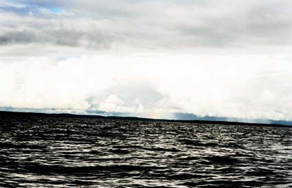 Ливень обрушился на нас внезапно, закрыв все окружающее серой непроглядной стеной воды. Мир сузился до пятачка радиусом 3 – 5 метров. Дальше ничего не было видно. Судно остановилось. Нам оставалось только, задраиться в свою гидрозащитную одежду, поудобнее откинуться на бортовые багажные сумки и, лежа на мокром, качающемся на беспорядочных волнах трамплине, ждать, когда окончится дождь.