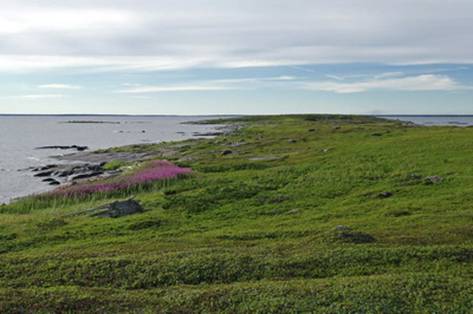 Под умиротворяющий шорох волн прекрасно выспались. Погода как на заказ: солнечно и тепло, по-прежнему восточный ветер 3 балла. Идем против ветра. Спешить сегодня некуда и на Песьей луде сделали длительную остановку. Просто полюбовались на красоту Кемских шхер. Вид с вершины острова замечательный: на востоке огромными каменными холмами возвышаются главные острова архипелага – Русский и Немецкий Кузова, со стороны материка причудливое сплетение многочисленных островов и проливов.