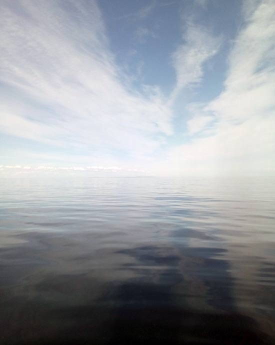 Ветер восточный ,усилился до 3-4 м.с., волна не больше 0.3-0.5 м. Лодка опять шла сама,а я подремывал возле рубки, изредка сверяя курс по компасу , чуть подруливая и ежась от свежего ветерка.