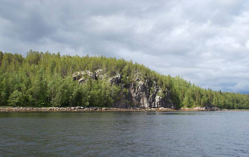 Немного погалсировал, пока не кончилась дневная норма ветра. Потом под мотором затарахтел в сторону Пежострова. Вот расстояния! Вроде рукой подать, а все плывешь и плывешь. Нацелился на губу Лодейная, на восточной оконечности острова. Заприметил там слева небольшой заливчик.