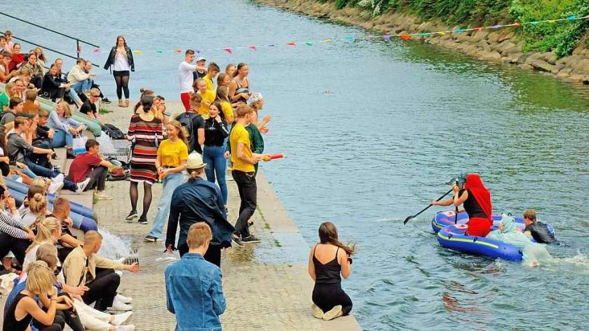 Я оставил велосипед на площади и пошел пешком. На одном из каналов проходили какие-то необычные соревнования, типа "веселых стартов". Экипажи надувных лодок отчаянно боролись за победу, а народ с берега поливал их из водяных пушек. Напоминаю, что температура воды была около 11 градусов, но это никого не смущало. Лоси-с...