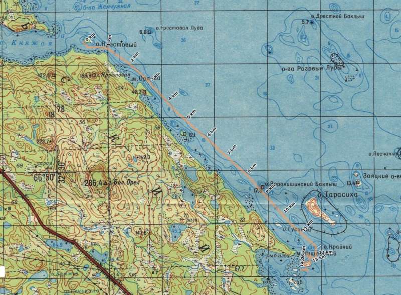Остров Воронишинский Баклыш. Там будем стоять на обратном пути.
