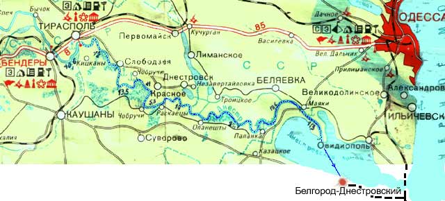 Тирасполь — Днестровский лиман - Белгород-Днестровский.